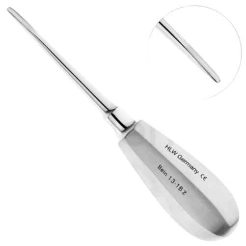 Элеватор Bein 13-1ВZ* от компании HLW используется при удалении зубов и зубных корней из верхней челюсти, иногда для удаления зуба мудрости из нижней челюсти. Легко вводится в ротовую полость, обеспечивая точность манипуляций. Рабочая часть элеватора Bein 13-1ВZ* имеет форму в виде желоба шириной в 3 мм заточенного на конце. Удобная ручка позволяет надежно удерживать инструмент, правильно прилагая усилие.