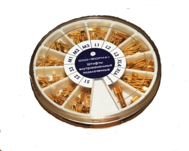 Профиль анкерных штифтов Форма с насечками позволяет легко вводить из в корневые каналы и закреплять их без создания излишнего давления на дентин. Чтобы увеличить срок службы, они покрываются слоем золотого напыления.